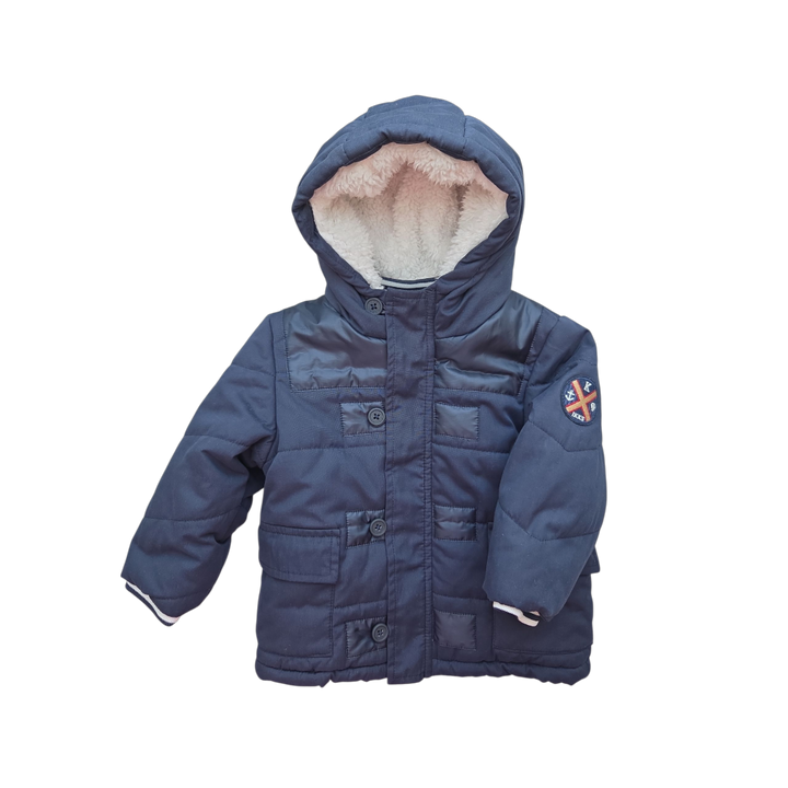 Manteau chaud bleu marine à capuche - IKKS - 12 Mois