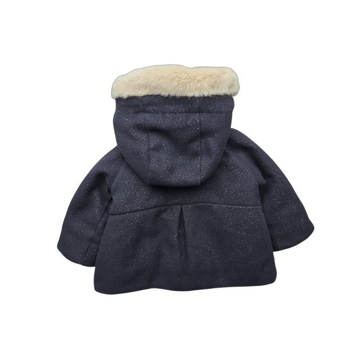 Manteau chaud bleu marine à paillettes - Fille - Automne / Hiver - 12 Mois - 84% Polyester / 14% Laine / 2% Fibre métallique