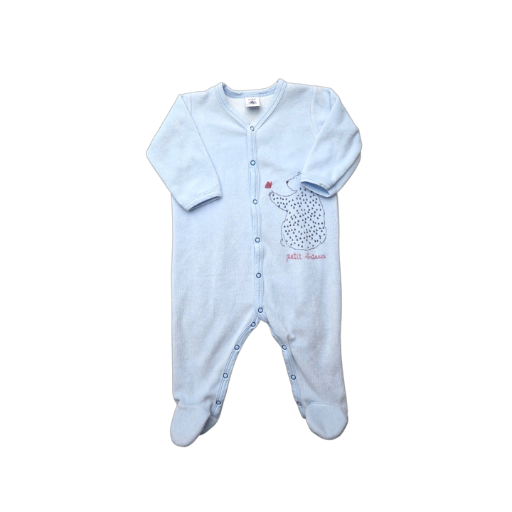 Pyjama bleu en velours - Petit Bateau - 6 Mois
