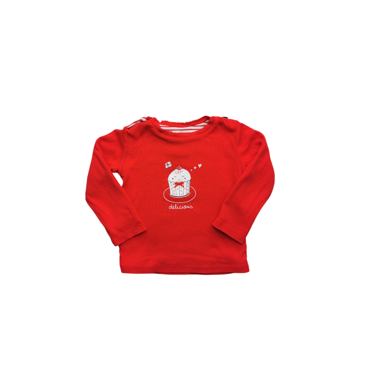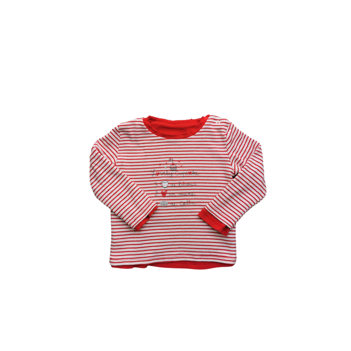 T-Shirt rayé et rouge manches longues- Fille - Automne/Hiver - 2 Ans - 100% Coton