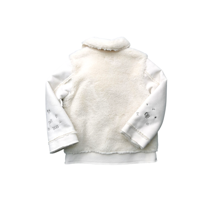 Fermeture zippée, broderie sur manches , bi matière avec un effet suédine et une partie en fourrure